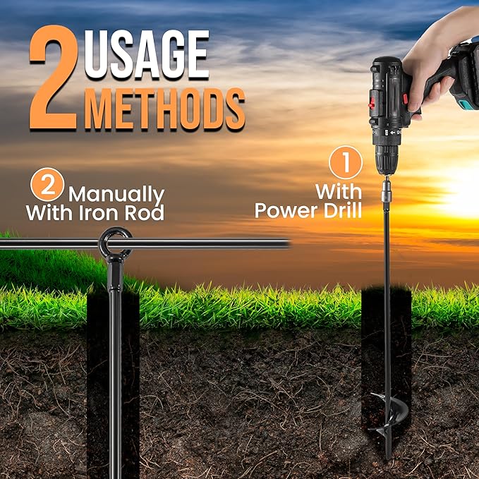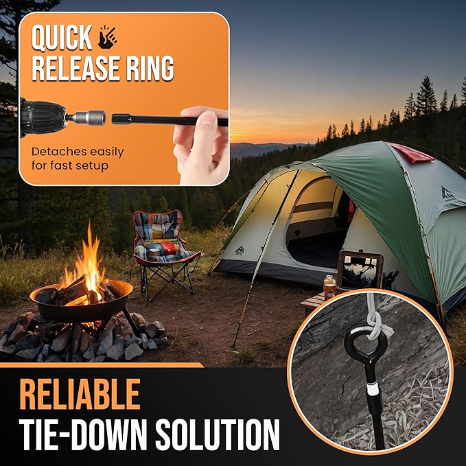 Fast, Easy Installation – Manual or Power Drill: Install in minutes by hand with a steel rod or use a power drill/impact wrench (11mm hex adapter compatible). Whether you’re securing a canopy or beach tent, setup is quick and tool-friendly